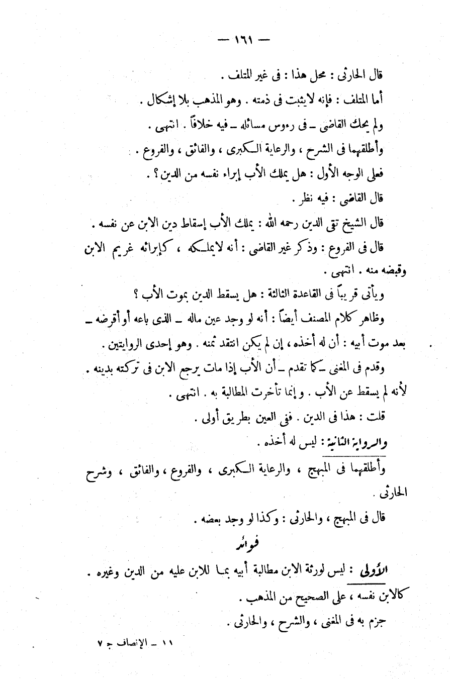 كتاب الإنصاف في معرفة الراجح من الخلاف للمرداوي (اسم الجزء: 7)