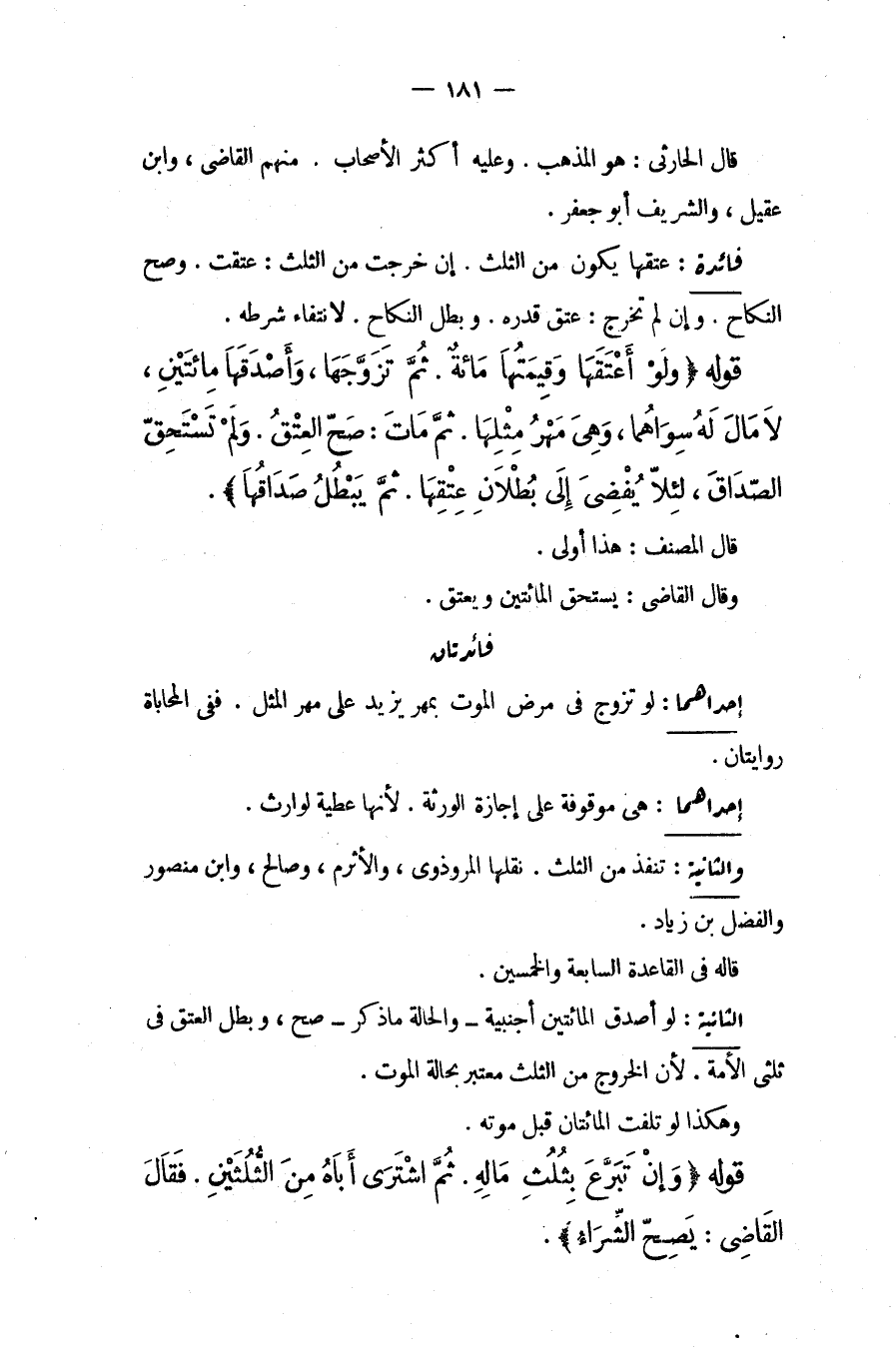 قَالَ الْحَارِثِيُّ: هُوَ الْمَذْهَبُ. وَعَلَيْهِ أَكْثَرُ الْأَصْحَابِ. مِنْهُمْ الْقَاضِي، وَابْنُ عَقِيلٍ، وَالشَّرِيفُ أَبُو جَعْفَرٍ.