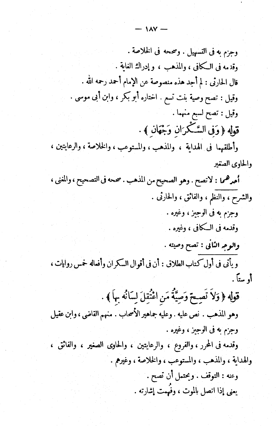 قَوْلُهُ (وَفِي السَّكْرَانِ وَجْهَانِ) . وَأَطْلَقَهُمَا فِي الْهِدَايَةِ، وَالْمُذْهَبِ، وَالْمُسْتَوْعِبِ، وَالْخُلَاصَةِ، وَالرِّعَايَتَيْنِ، وَالْحَاوِي الصَّغِيرِ