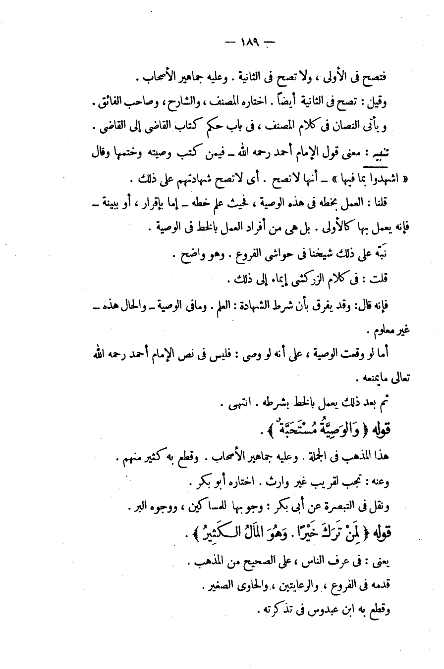 قَوْلُهُ (وَالْوَصِيَّةُ مُسْتَحَبَّةٌ) . هَذَا الْمَذْهَبُ فِي الْجُمْلَةِ. وَعَلَيْهِ جَمَاهِيرُ الْأَصْحَابِ. وَقَطَعَ بِهِ كَثِيرٌ مِنْهُمْ. وَعَنْهُ: تَجِبُ لِقَرِيبٍ غَيْرِ وَارِثٍ. اخْتَارَهُ أَبُو بَكْرٍ. وَنَقَلَ فِي التَّبْصِرَةِ عَنْ أَبِي بَكْرٍ: وُجُوبَهَا لِلْمَسَاكِينِ، وَوُجُوهِ الْبِرِّ. قَوْلُهُ (لِمَنْ تَرَكَ خَيْرًا. وَهُوَ الْمَالُ الْكَثِيرُ) . يَعْنِي: فِي عُرْفِ النَّاسِ، عَلَى الصَّحِيحِ مِنْ الْمَذْهَبِ. قَدَّمَهُ فِي الْفُرُوعِ، وَالرِّعَايَتَيْنِ، وَالْحَاوِي الصَّغِيرِ. وَقَطَعَ بِهِ ابْنُ عَبْدُوسٍ فِي تَذْكِرَتِهِ.