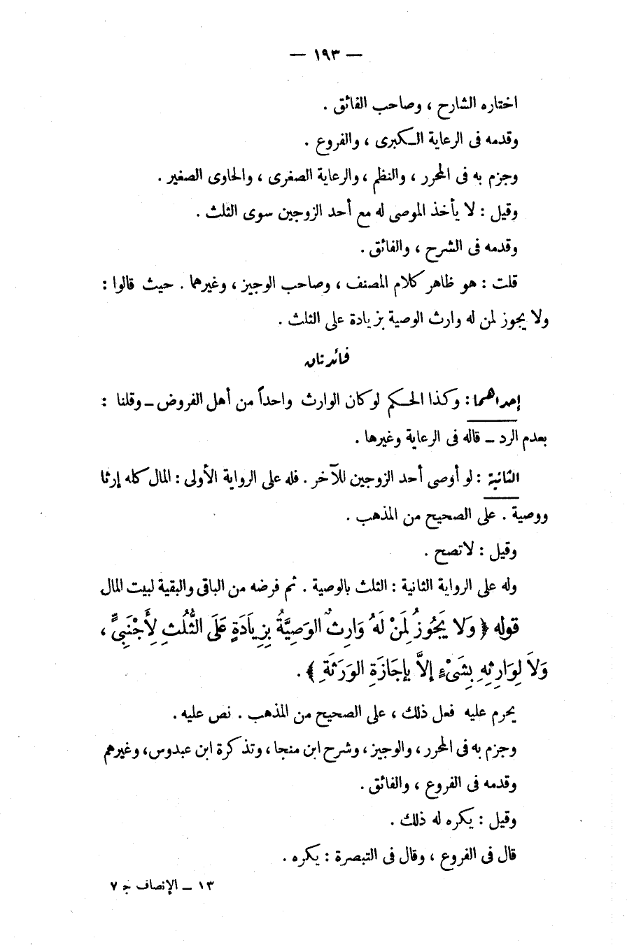 كتاب الإنصاف في معرفة الراجح من الخلاف للمرداوي (اسم الجزء: 7)