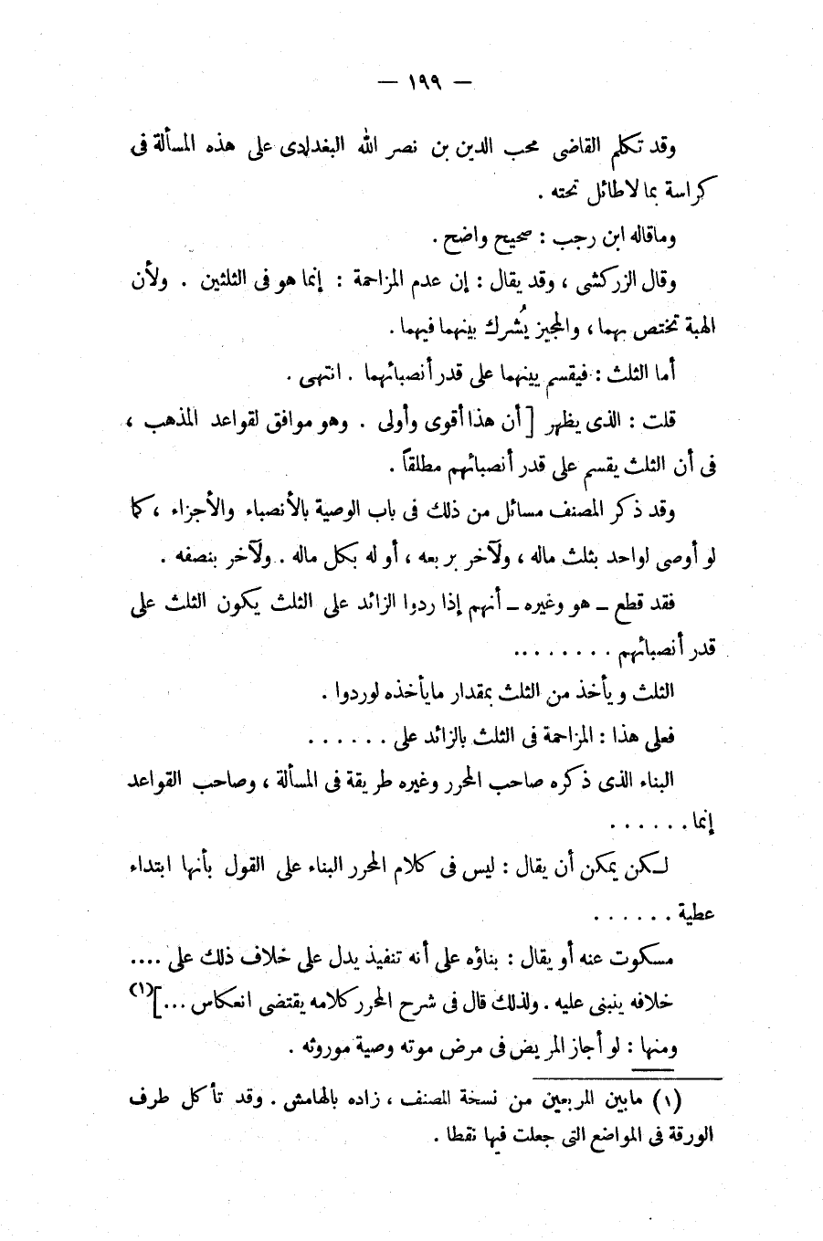 وَقَدْ تَكَلَّمَ الْقَاضِي مُحِبُّ الدِّينِ بْنُ نَصْرِ اللَّهِ الْبَغْدَادِيُّ عَلَى هَذِهِ الْمَسْأَلَةِ فِي كُرَّاسَةٍ بِمَا لَا طَائِلَ تَحْتَهُ. وَمَا قَالَهُ ابْنُ رَجَبٍ: صَحِيحٌ وَاضِحٌ.