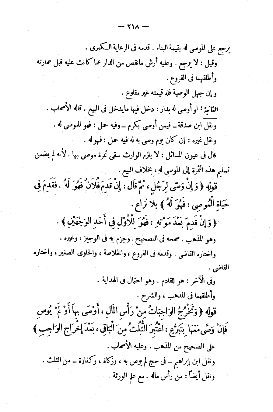 قَوْلُهُ (وَإِنْ وَصَّى لِرَجُلٍ، ثُمَّ قَالَ: إنْ قَدِمَ فُلَانٌ فَهُوَ لَهُ. فَقَدِمَ فِي حَيَاةِ الْمُوصِي: فَهُوَ لَهُ) بِلَا نِزَاعٍ. (وَإِنْ قَدِمَ بَعْدَ مَوْتِهِ: فَهُوَ لِلْأَوَّلِ فِي أَحَدِ الْوَجْهَيْنِ) وَهُوَ الْمَذْهَبُ. صَحَّحَهُ فِي التَّصْحِيحِ. وَجَزَمَ بِهِ فِي الْوَجِيزِ، وَغَيْرِهِ. وَاخْتَارَهُ الْقَاضِي. وَقَدَّمَهُ فِي الْفُرُوع، وَالْخُلَاصَةِ، وَالْحَاوِي الصَّغِيرِ، وَاخْتَارَهُ الْقَاضِي. وَفِي الْآخَرِ: هُوَ لِلْقَادِمِ. وَهُوَ احْتِمَالٌ فِي الْهِدَايَةِ. وَأَطْلَقَهُمَا فِي الْمُذْهَبِ، وَالشَّرْحِ.