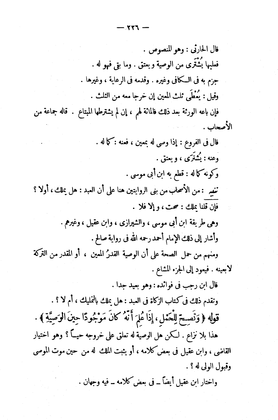 قَالَ الْحَارِثِيُّ: وَهُوَ الْمَنْصُوصُ. فَعَلَيْهَا يُشْتَرَى مِنْ الْوَصِيَّةِ وَيُعْتَقُ. وَمَا بَقِيَ فَهُوَ لَهُ. جَزَمَ بِهِ فِي الْكَافِي وَغَيْرِهِ. وَقَدَّمَهُ فِي الرِّعَايَةِ، وَغَيْرِهَا. وَقِيلَ: يُعْطَى ثُلُثَ الْمُعَيَّنِ إنْ خَرَجَا مَعَهُ مِنْ الثُّلُثِ. فَإِنْ بَاعَهُ الْوَرَثَةُ بَعْدَ ذَلِكَ فَالْمِائَةُ لَهُمْ، إنْ لَمْ يَشْتَرِطْهَا الْمُبْتَاعُ. قَالَهُ جَمَاعَةٌ مِنْ الْأَصْحَابِ.