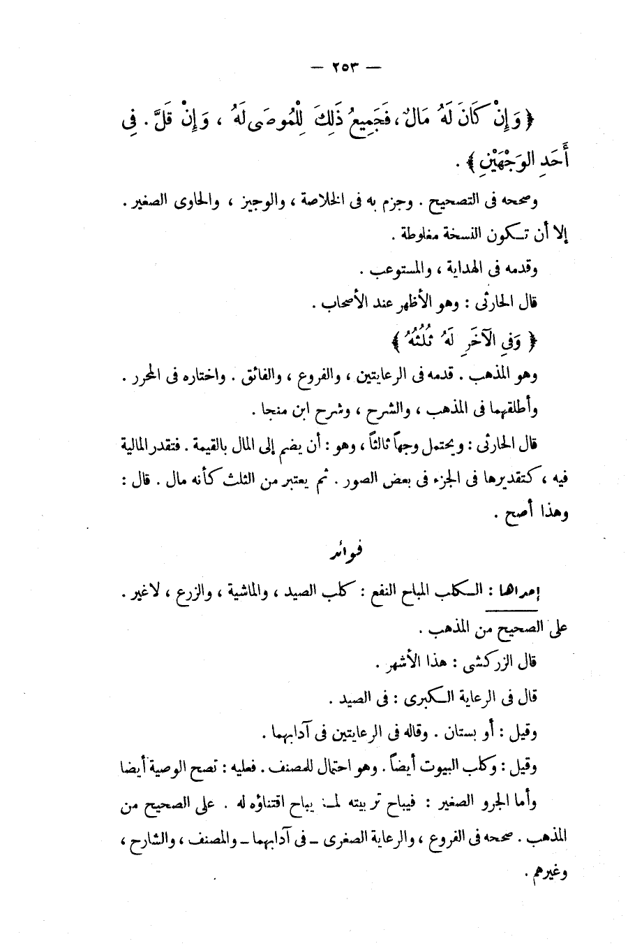 فَوَائِدُ: إحْدَاهَا: الْكَلْبُ الْمُبَاحُ النَّفْعِ: كَلْبُ الصَّيْدِ، وَالْمَاشِيَةِ، وَالزَّرْعِ، لَا غَيْرَ. عَلَى الصَّحِيحِ مِنْ الْمَذْهَبِ. قَالَ الزَّرْكَشِيُّ: هَذَا الْأَشْهَرُ. قَالَ فِي الرِّعَايَةِ الْكُبْرَى: فِي الصَّيْدِ. وَقِيلَ: أَوْ بُسْتَانٌ. وَقَالَهُ فِي الرِّعَايَتَيْنِ فِي آدَابِهِمَا. وَقِيلَ: وَكَلْبُ الْبُيُوتِ أَيْضًا. وَهُوَ احْتِمَالٌ لِلْمُصَنِّفِ. فَعَلَيْهِ: تَصِحُّ الْوَصِيَّةُ أَيْضًا وَأَمَّا الْجَرْوُ الصَّغِيرُ: فَيُبَاحُ تَرْبِيَتُهُ لِمَا يُبَاحُ اقْتِنَاؤُهُ لَهُ. عَلَى الصَّحِيحِ مِنْ الْمَذْهَبِ. صَحَّحَهُ فِي الْفُرُوعِ، وَالرِّعَايَةُ الصُّغْرَى فِي آدَابِهِمَا وَالْمُصَنِّفُ، وَالشَّارِحُ، وَغَيْرُهُمْ.