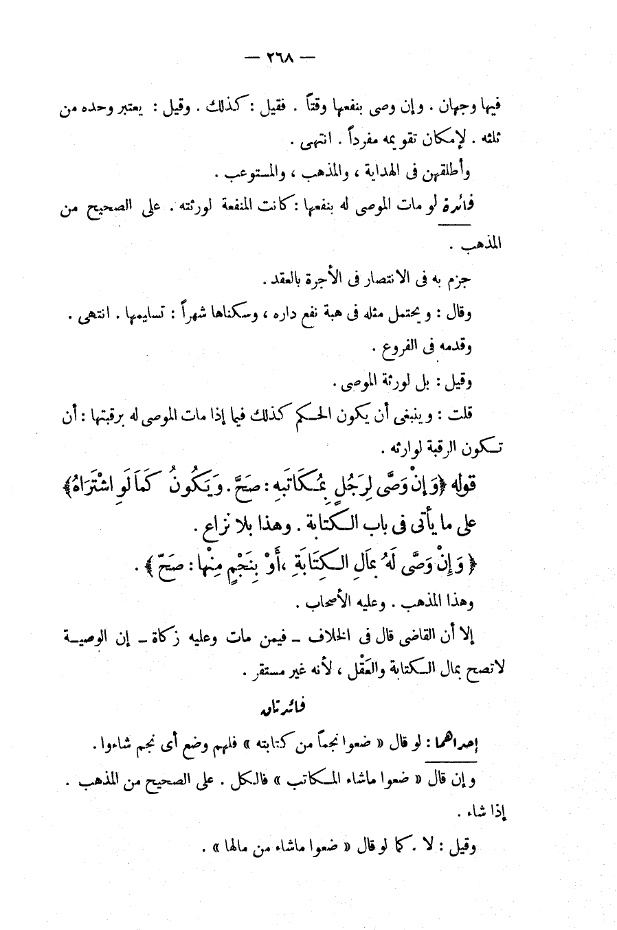 قَوْلُهُ (وَإِنْ وَصَّى لِرَجُلٍ بِمُكَاتَبِهِ: صَحَّ. وَيَكُونُ كَمَا لَوْ اشْتَرَاهُ) عَلَى مَا يَأْتِي فِي بَابِ الْكِتَابَةِ وَهَذَا بِلَا نِزَاعٍ. (وَإِنْ وَصَّى لَهُ بِمَالِ الْكِتَابَةِ، أَوْ بِنَجْمٍ مِنْهَا: صَحَّ) وَهَذَا الْمَذْهَبُ وَعَلَيْهِ الْأَصْحَابُ. إلَّا أَنَّ الْقَاضِيَ قَالَ فِي الْخِلَافِ فِيمَنْ مَاتَ وَعَلَيْهِ زَكَاةٌ إنَّ الْوَصِيَّةَ لَا تَصِحُّ بِمَالِ الْكِتَابَةِ وَالْعَقْلِ، لِأَنَّهُ غَيْرُ مُسْتَقِرٍّ. فَائِدَتَانِ