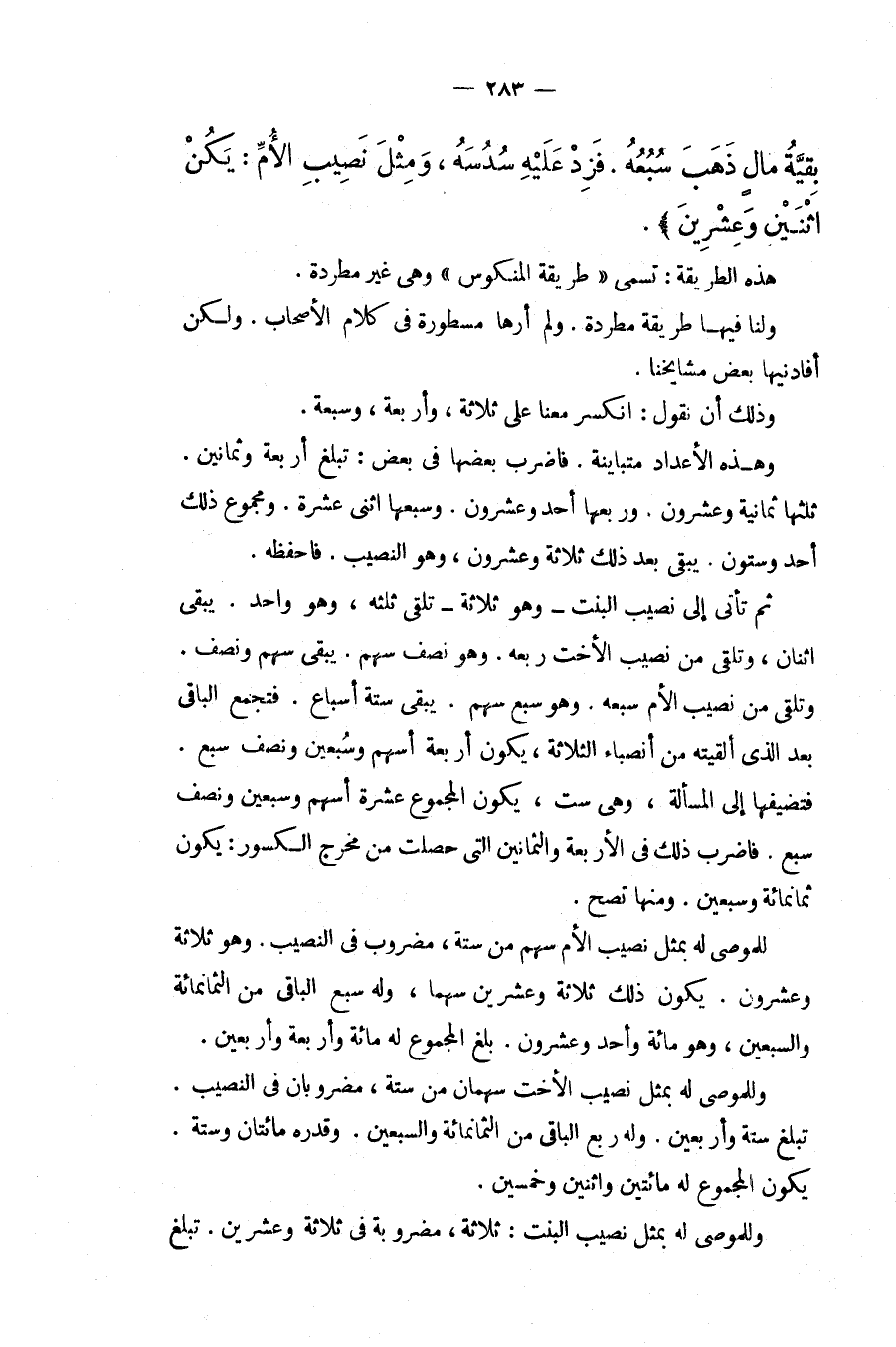 هَذِهِ الطَّرِيقَةُ: تُسَمَّى " طَرِيقَةَ الْمَنْكُوسِ " وَهِيَ غَيْرُ مُطَّرِدَةٍ. وَلَنَا فِيهَا طَرِيقَةٌ مُطَّرِدَةٌ. وَلَمْ أَرَهَا مَسْطُورَةً فِي كَلَامِ الْأَصْحَابِ. وَلَكِنْ أَفَادَنِيهَا بَعْضُ مَشَايِخِنَا.