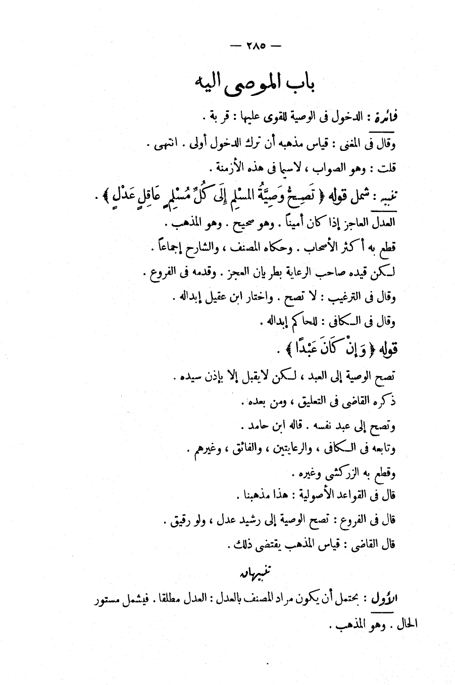 شَمِلَ قَوْلُهُ (تَصِحُّ وَصِيَّةُ الْمُسْلِمِ إلَى كُلِّ مُسْلِمٍ عَاقِلٍ عَدْلٍ) الْعَدْلُ الْعَاجِزُ إذَا كَانَ أَمِينًا. وَهُوَ صَحِيحٌ. وَهُوَ الْمَذْهَبُ. قَطَعَ بِهِ أَكْثَرُ الْأَصْحَابِ. وَحَكَاهُ الْمُصَنِّفُ، وَالشَّارِحُ إجْمَاعًا. لَكِنْ قَيَّدَهُ صَاحِبُ الرِّعَايَةِ بِطَرَيَانِ الْعَجْزِ. وَقَدَّمَهُ فِي الْفُرُوعِ. وَقَالَ فِي التَّرْغِيبِ: لَا تَصِحُّ. وَاخْتَارَ ابْنُ عَقِيلٍ إبْدَالَهُ. وَقَالَ فِي الْكَافِي: لِلْحَاكِمِ إبْدَالُهُ. قَوْلُهُ (وَإِنْ كَانَ عَبْدًا) . تَصِحُّ الْوَصِيَّةُ إلَى الْعَبْدِ، لَكِنْ لَا يُقْبَلُ إلَّا بِإِذْنِ سَيِّدِهِ. ذَكَرَهُ الْقَاضِي فِي التَّعْلِيقِ، وَمَنْ بَعْدَهُ. وَتَصِحُّ إلَى عَبْدِ نَفْسِهِ قَالَهُ ابْنُ حَامِدٍ. وَتَابَعَهُ فِي الْكَافِي، وَالرِّعَايَتَيْنِ، وَالْفَائِقِ، وَغَيْرِهِمْ. وَقَطَعَ بِهِ الزَّرْكَشِيُّ وَغَيْرُهُ. قَالَ فِي الْقَوَاعِدِ الْأُصُولِيَّةِ: هَذَا مَذْهَبُنَا. قَالَ فِي الْفُرُوعِ: تَصِحُّ الْوَصِيَّةُ إلَى رَشِيدٍ عَدْلٍ، وَلَوْ رَقِيقٌ. قَالَ الْقَاضِي: قِيَاسُ الْمَذْهَبِ يَقْتَضِي ذَلِكَ.