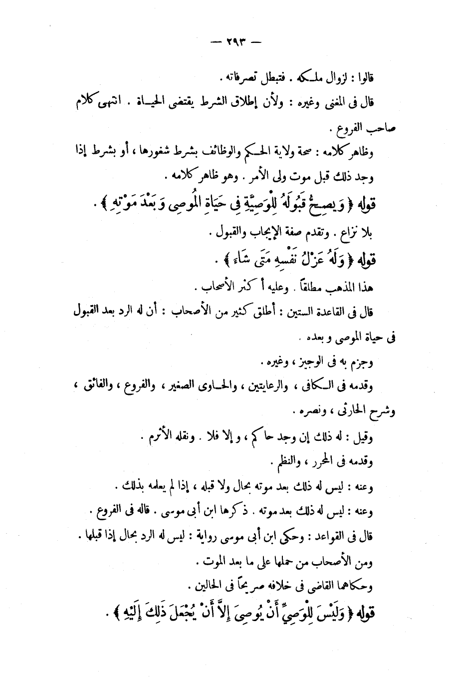 قَالُوا: لِزَوَالِ مِلْكِهِ. فَتَبْطُلُ تَصَرُّفَاتُهُ. قَالَ فِي الْمُغْنِي وَغَيْرِهِ: وَلِأَنَّ إطْلَاقَ الشَّرْطِ يَقْتَضِي الْحَيَاةَ. انْتَهَى كَلَامُ صَاحِبِ الْفُرُوعِ. وَظَاهِرُ كَلَامِهِ: صِحَّةُ وِلَايَةِ الْحُكْمِ وَالْوَظَائِفِ بِشَرْطِ شُغُورِهَا، أَوْ بِشَرْطٍ إذَا وُجِدَ ذَلِكَ قَبْلَ مَوْتِ وَلِيِّ الْأَمْرِ. وَهُوَ ظَاهِرُ كَلَامِهِ