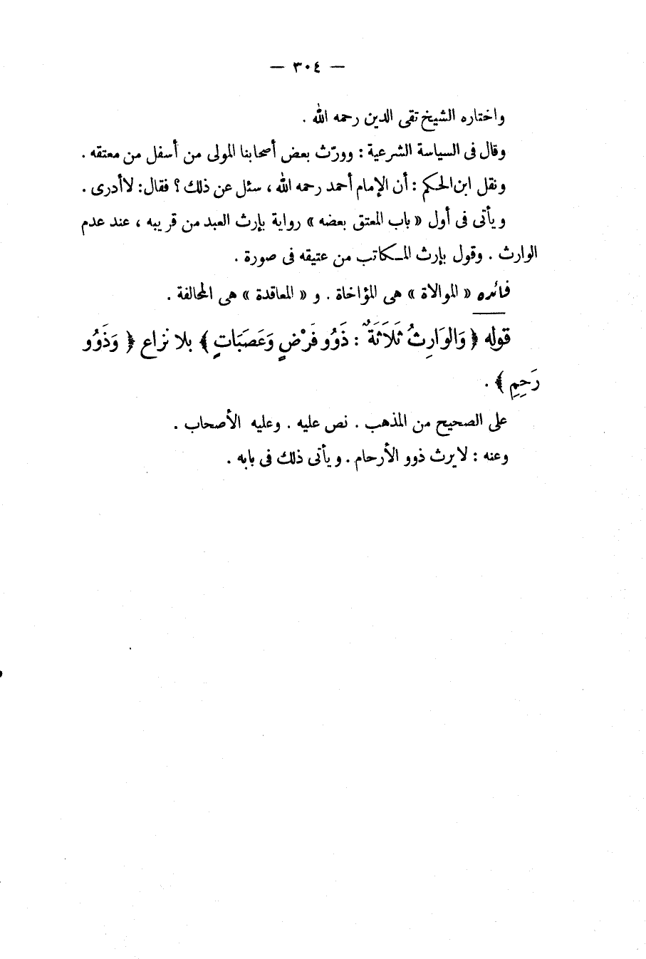وَاخْتَارَهُ الشَّيْخُ تَقِيُّ الدِّينِ - رَحِمَهُ اللَّهُ -. وَقَالَ فِي السِّيَاسَةِ الشَّرْعِيَّةِ: وَوَرَّثَ بَعْضُ أَصْحَابِنَا الْمَوْلَى مِنْ أَسْفَلَ مِنْ مُعْتِقِهِ. وَنَقَلَ ابْنُ الْحَكَمِ: أَنَّ الْإِمَامَ أَحْمَدَ - رَحِمَهُ اللَّهُ -، سُئِلَ عَنْ ذَلِكَ؟ فَقَالَ: لَا أَدْرِي. وَيَأْتِي فِي أَوَّلِ " بَابِ الْمُعْتَقِ بَعْضُهُ " رِوَايَةٌ بِإِرْثِ الْعَبْدِ مِنْ قَرِيبِهِ، عِنْدَ عَدَمِ الْوَارِثِ. وَقَوْلٌ: بِإِرْثِ الْمُكَاتَبِ مِنْ عَتِيقِهِ فِي صُورَةٍ.