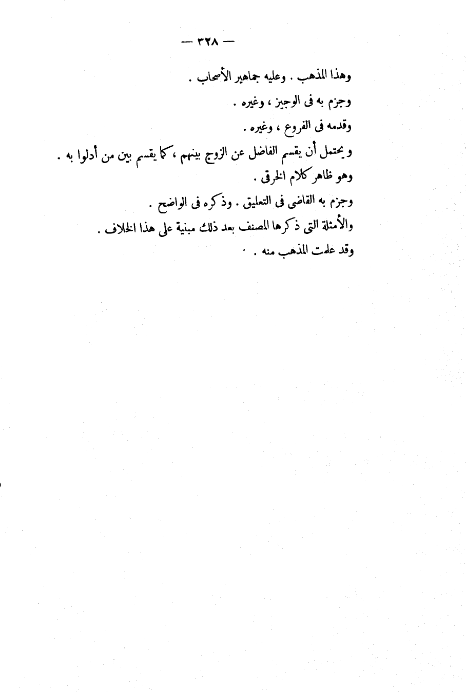 وَهَذَا الْمَذْهَبُ. وَعَلَيْهِ جَمَاهِيرُ الْأَصْحَابِ. وَجَزَمَ بِهِ فِي الْوَجِيزِ، وَغَيْرِهِ. وَقَدَّمَهُ فِي الْفُرُوعِ، وَغَيْرِهِ. وَيُحْتَمَلُ أَنْ يُقْسَمَ الْفَاضِلُ عَنْ الزَّوْجِ بَيْنَهُمْ، كَمَا يُقْسَمُ بَيْنَ مَنْ أَدْلَوْا بِهِ. وَهُوَ ظَاهِرُ كَلَامِ الْخِرَقِيِّ. وَجَزَمَ بِهِ الْقَاضِي فِي التَّعْلِيقِ. وَذَكَرَهُ فِي الْوَاضِحِ. وَالْأَمْثِلَةُ الَّتِي ذَكَرَهَا الْمُصَنِّفُ بَعْدَ ذَلِكَ مَبْنِيَّةٌ عَلَى هَذَا الْخِلَافِ. وَقَدْ عَلِمْت الْمَذْهَبَ مِنْهُ.