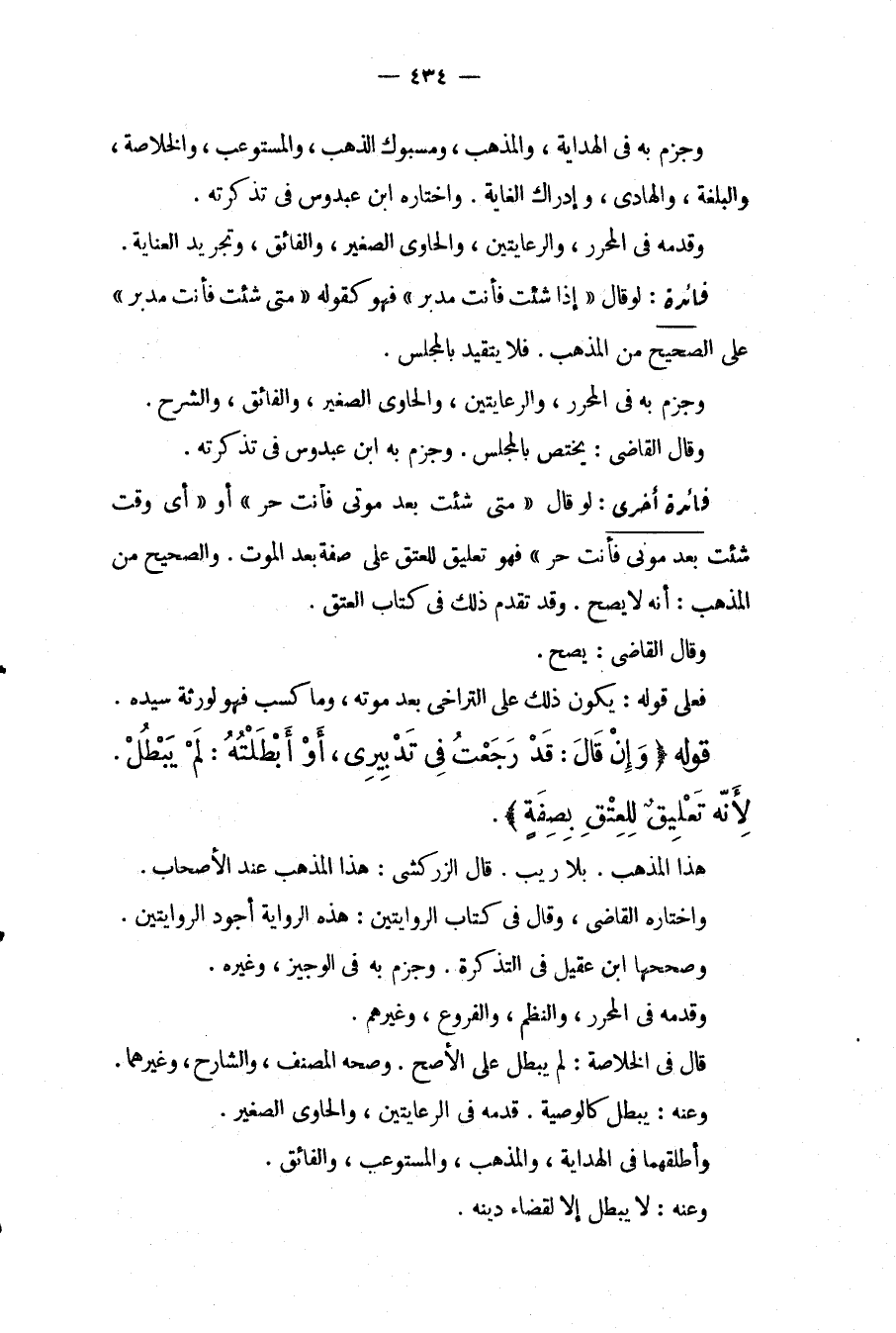 وَجَزَمَ بِهِ فِي الْهِدَايَةِ، وَالْمُذْهَبِ، وَمَسْبُوكِ الذَّهَبِ، وَالْمُسْتَوْعِبِ، وَالْخُلَاصَةِ، وَالْبُلْغَةِ، وَالْهَادِي، وَإِدْرَاكِ الْغَايَةِ. اخْتَارَهُ ابْنُ عَبْدُوسٍ فِي تَذْكِرَتِهِ. وَقَدَّمَهُ فِي الْمُحَرَّرِ، وَالرِّعَايَتَيْنِ، وَالْحَاوِي الصَّغِيرِ، وَالْفَائِقِ، وَتَجْرِيدِ الْعِنَايَةِ.