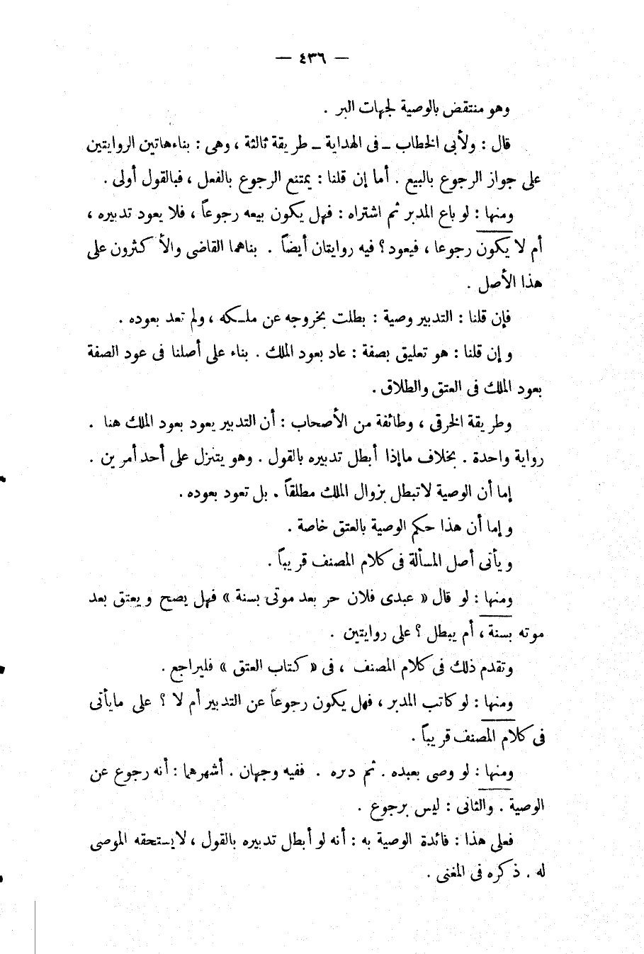 وَهُوَ مُنْتَقَضٌ بِالْوَصِيَّةِ لِجِهَاتِ الْبِرِّ. قَالَ: وَلِأَبِي الْخَطَّابِ فِي الْهِدَايَةِ طَرِيقَةٌ ثَالِثَةٌ، وَهِيَ: بِنَاءُ هَاتَيْنِ الرِّوَايَتَيْنِ عَلَى جَوَازِ الرُّجُوعِ بِالْبَيْعِ. أَمَّا إنْ قُلْنَا: يَمْتَنِعُ الرُّجُوعُ بِالْفِعْلِ، فَبِالْقَوْلِ أَوْلَى.
