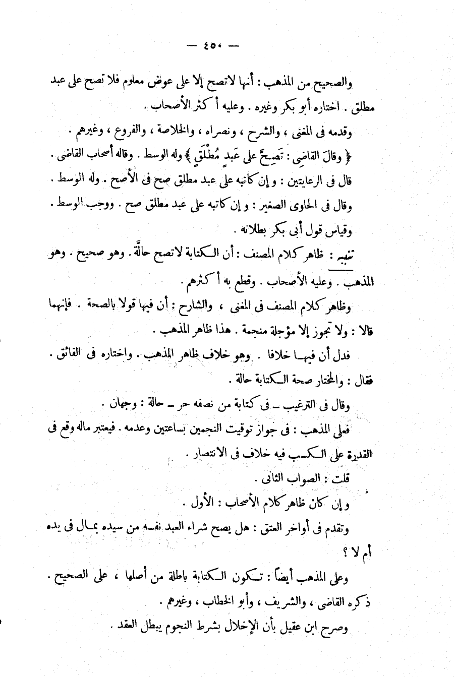 وَالصَّحِيحُ مِنْ الْمَذْهَبِ: أَنَّهَا لَا تَصِحُّ إلَّا عَلَى عِوَضٍ مَعْلُومٍ فَلَا تَصِحُّ عَلَى عَبْدٍ مُطْلَقٍ. اخْتَارَهُ أَبُو بَكْرٍ وَغَيْرُهُ. وَعَلَيْهِ أَكْثَرُ الْأَصْحَابِ. وَقَدَّمَهُ فِي الْمُغْنِي، وَالشَّرْحِ، وَنَصَرَاهُ، وَالْخُلَاصَةِ، وَالْفُرُوعِ، وَغَيْرُهُمْ.