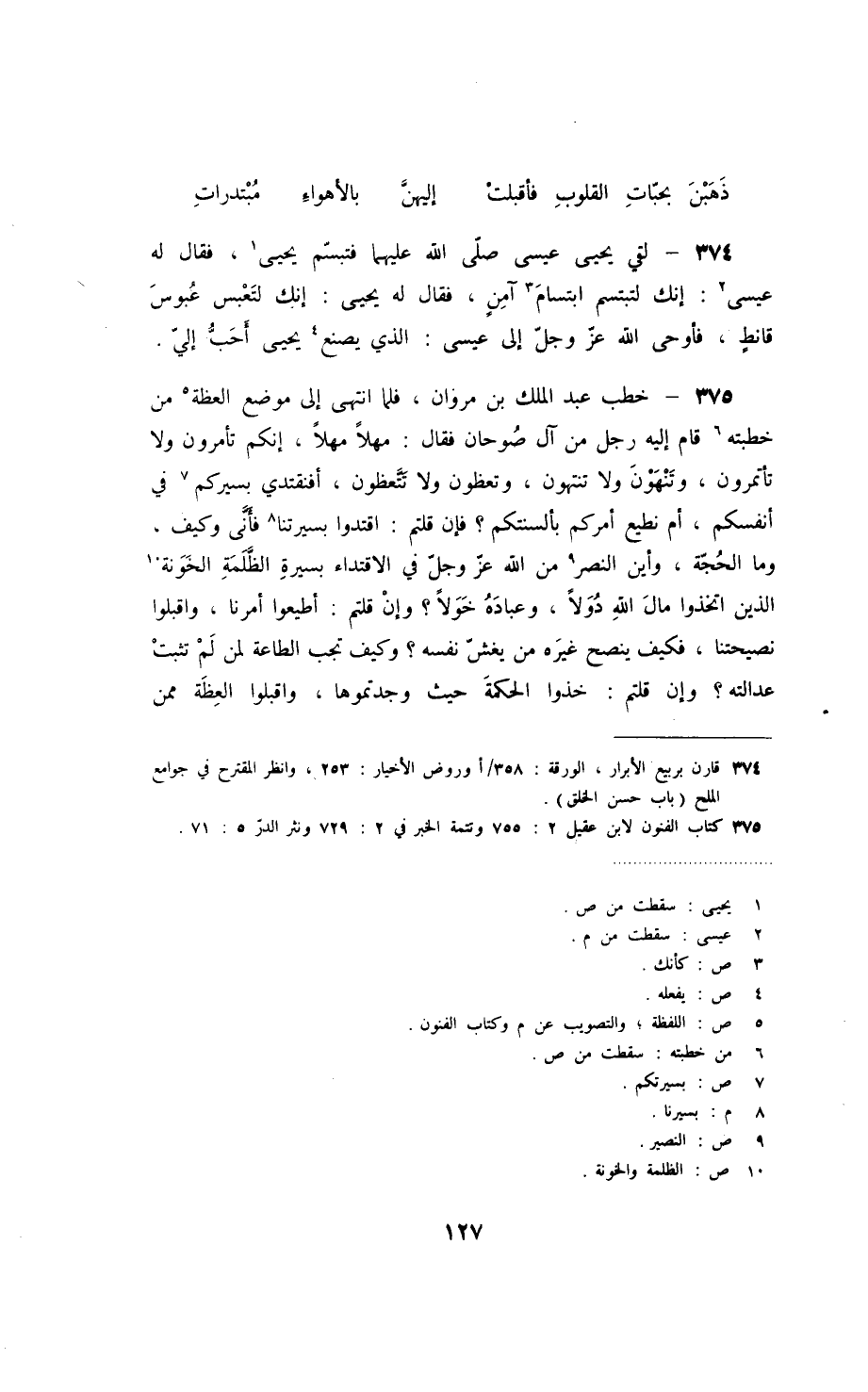 خطب عبد الملك بن مروان، فلما انتهى إلى موضع العظة من خطبته قام إليه رجل من آل صوحان فقال: مهلاً مهلاً، إنكم تأمرون ولا تأتمرون، وتنهون ولا تنتهون، وتعظون ولا تتّعظون، أفنقتدي بسيركم في أنفسكم، أم نطيع أمركم بألسنتكم؟ فإن قلتم: اقتدوا بسيرتنا فأنّى وكيف، وما الحجّة، وأين النصر من الله عزّ وجلّ في الاقتداء بسيرة الظّلمة الخونة الذين اتخذوا مال الله دولاً، وعباده خولاً؟ وإن قلتم: أطيعوا أمرنا، واقبلوا نصيحتنا، فكيف ينصح غيره من يغشّ نفسه؟ وكيف تجب الطاعة لمن لم تثبت عدالته؟ وإن قلتم: خذوا الحكمة حيث وجدتموها، واقبلوا العظة ممن