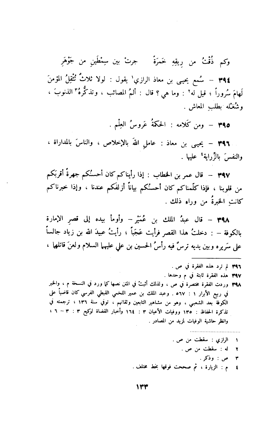 سمع يحيى بن معاذ الرازي يقول: لولا ثلاث تثقل المؤمن لهام سروراً؛ قيل له: وما هي؟ قال: ألم المصائب، وتذكّره الذنوب، وشغله بطلب المعاش.