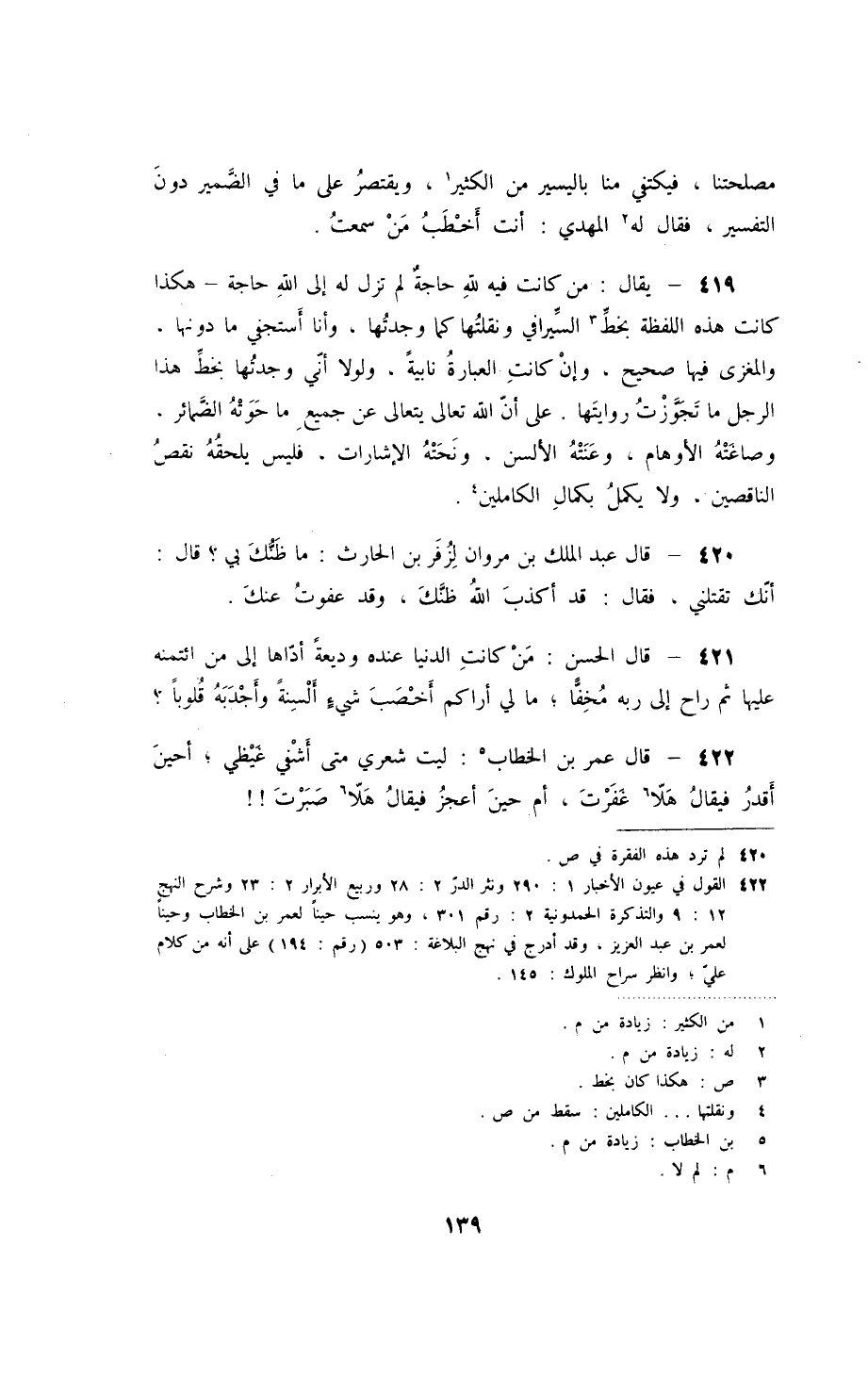 يقال: من كانت فيه لله حاجةٌ لم تزل له إلى الله حاجة - هكذا كانت هذه اللفظة بخطّ السّيرافي ونقلتها كما وجدتها، وأنا أستجفي ما دونها، والمغزى فيها صحيح، وإن كانت العبارة نابيةً، ولولا أنّي وجدتها بخطّ هذا الرجل ما تجوّزت روايتها. على أنّ الله تعالى يتعالى عن جميع ما حوته الضّمائر، وصاغته الأوهام، وعنته الألسن، ونحته الإشارات، فليس يلحقه نقص الناقصين، ولا يكمل بكمال الكاملين.