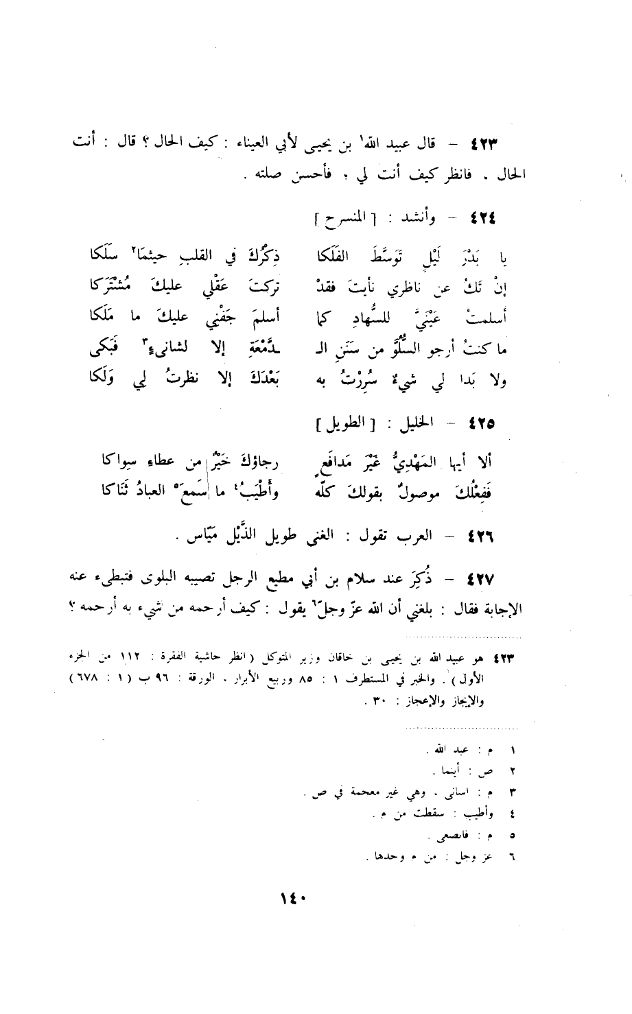 قال عبيد الله بن يحيى لأبي العيناء: كيف الحال؟ قال: أنت الحال، فانظر كيف أنت لي؛ فأحسن صلته.