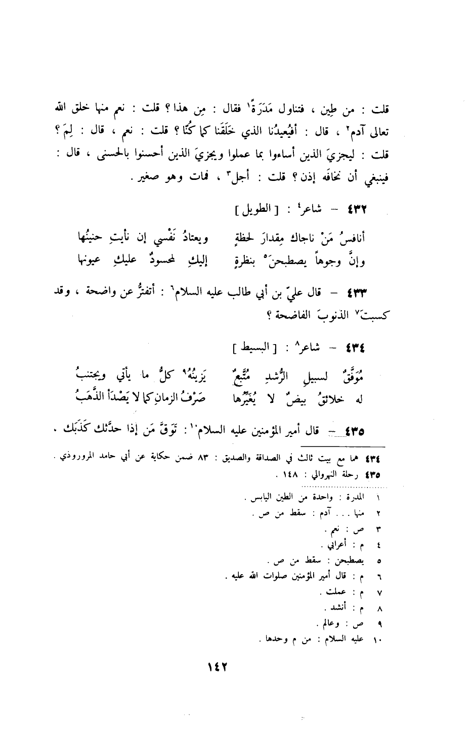 قلت: من طين، فتناول مدرةً فقال: من هذا؟ قلت: نعم منها خلق الله تعالى آدم، قال: أفيعيدنا الذي خلقنا كما كنّا؟ قلت: نعم، قال: لم؟ قلت: ليجزي الذين أساءوا بما عملوا ويجزي الذين أحسنوا بالحسنى، قال: فينبغي أن نخافه إذن؟ قلت، أجل، فمات وهو صغير.