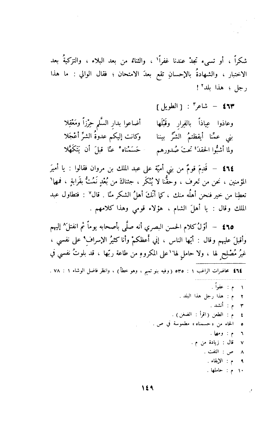 شكراً، أو تسئ تجد عندنا غفراً، والثناء من بعد البلاء، والتزكية بعد الاختبار، والشهادة بالإحسان تقع بعد الامتحان؛ فقال الوالي: ما هذا رجل؛ هذا بلد! شاعر: الطويل