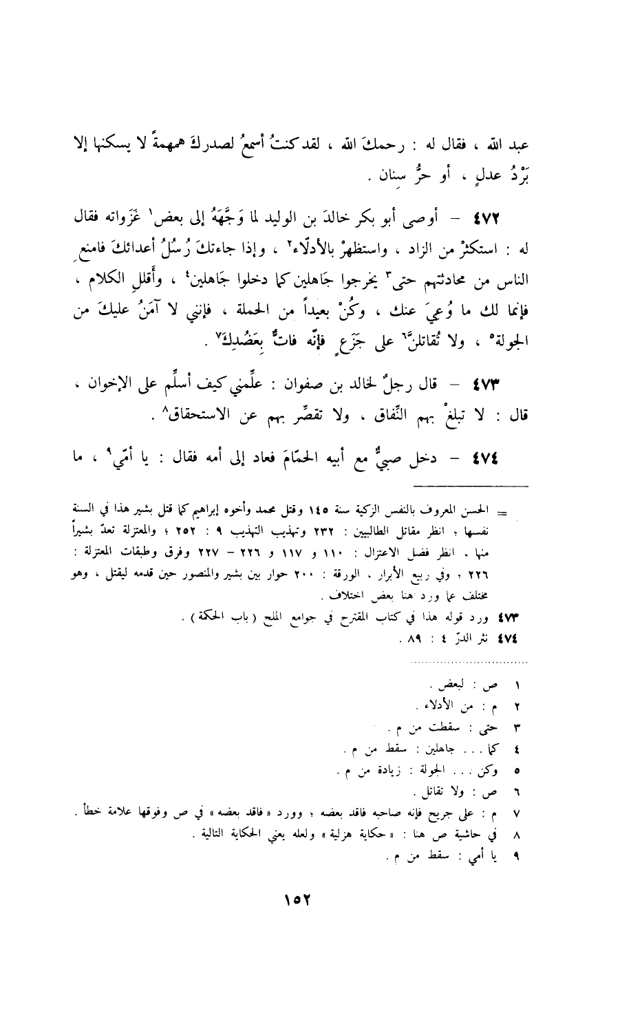 قال رجلٌ لخالد بن صفوان: علّمني كيف أسلّم على الإخوان، قال: لا تبلغ بهم النّفاق، ولا تقصّر بهم عن الاستحقاق.