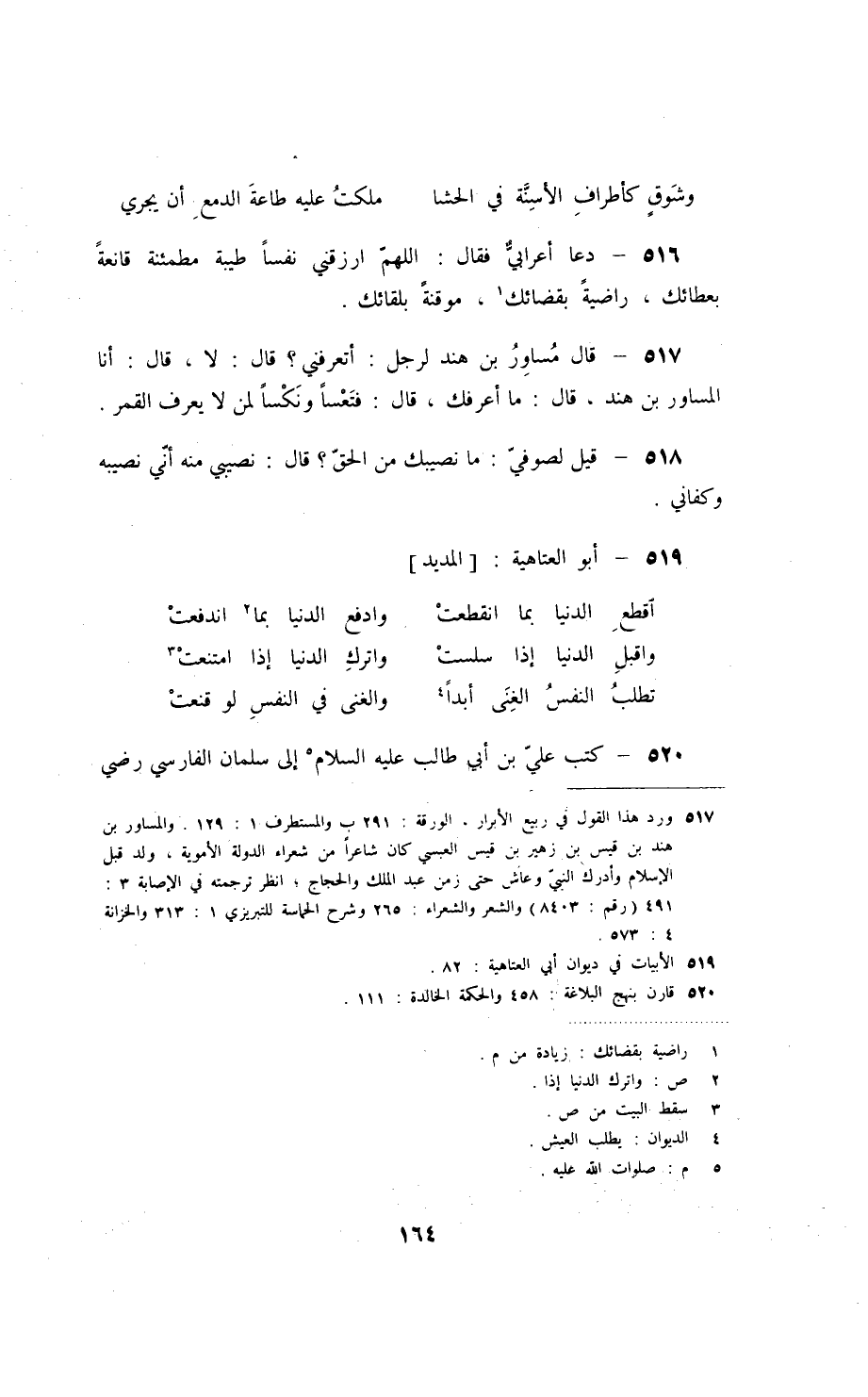 دعا أعرابيٌّ فقال: اللهمّ ارزقني نفساً طيبة مطمئنة قانعةً بعطائك، راضيةً بقضائك، موقنةً بلقائك.