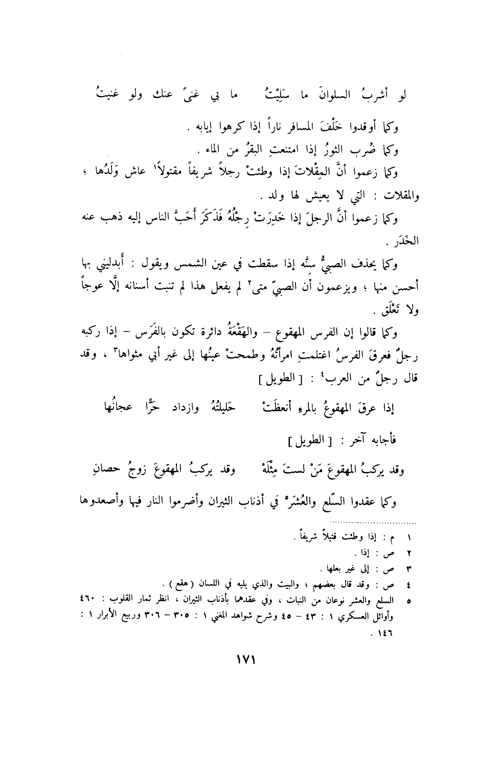وكما زعموا أنّ المقلات إذا وطئت رجلاً شريفاً مقتولاً عاش ولدها، والمقلات: التي لا يعيش لها ولد.