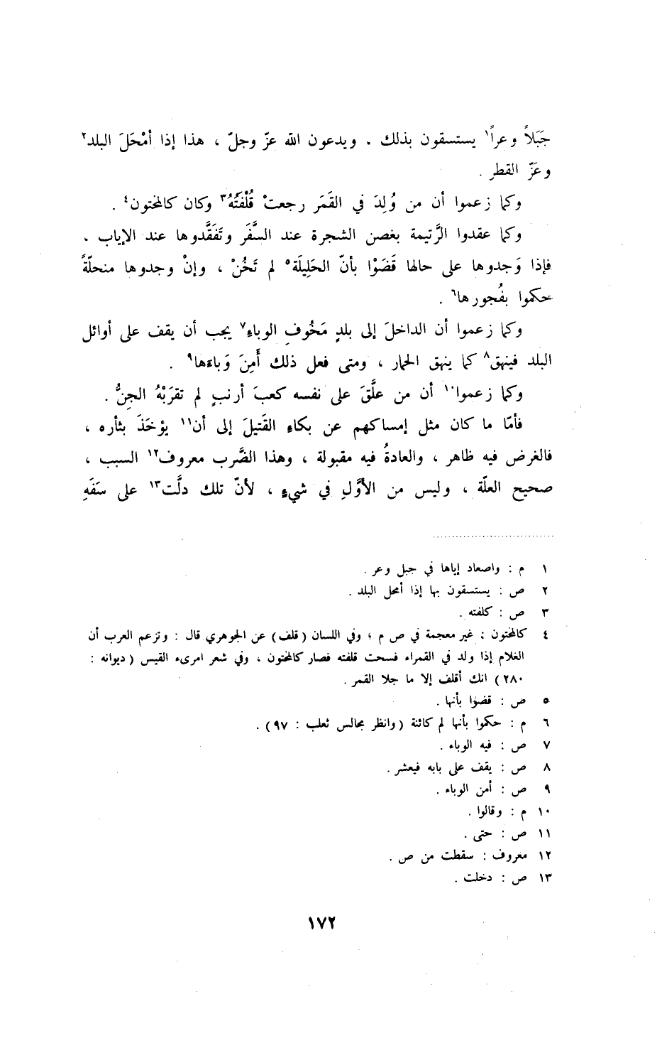 فأمّا ما كان مثل إمساكهم عن بكاء القتيل إلى أن يؤخذ بثأره، فالغرض فيه ظاهر، والعادة فيه مقبولة، وهذا الضّرب معروف السبب، صحيح العلّة، وليس من الأوّل في شيءٍ، لأنّ تلك دلّت على سفه
