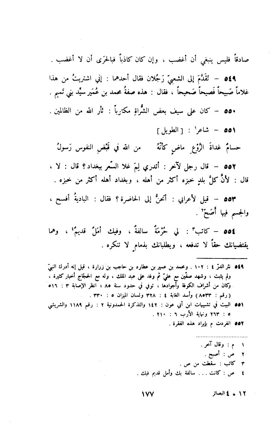 تقدّم إلى الشعبيّ رجلان فقال أحدهما: إني اشتريت من هذا غلاماً صبيحاً فصيحاً صحيحاً، فقال: هذه صفة محمد بن عمير سيّد بني تميم.