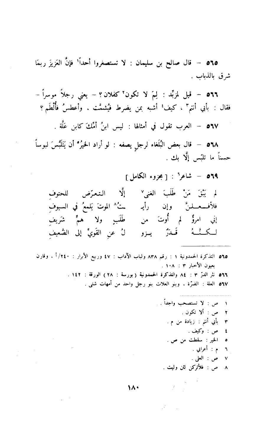 قيل لمزبّد: لم لا تكون كفلان؟ - يعني رجلاً موسراً - فقال: بأبي أنتم، كيف أشبه بمي يضرط فيشمّت، وأعطس فألطم؟ العرب تقول في أمثالها: ليس ابن أمّك كابن علّة.