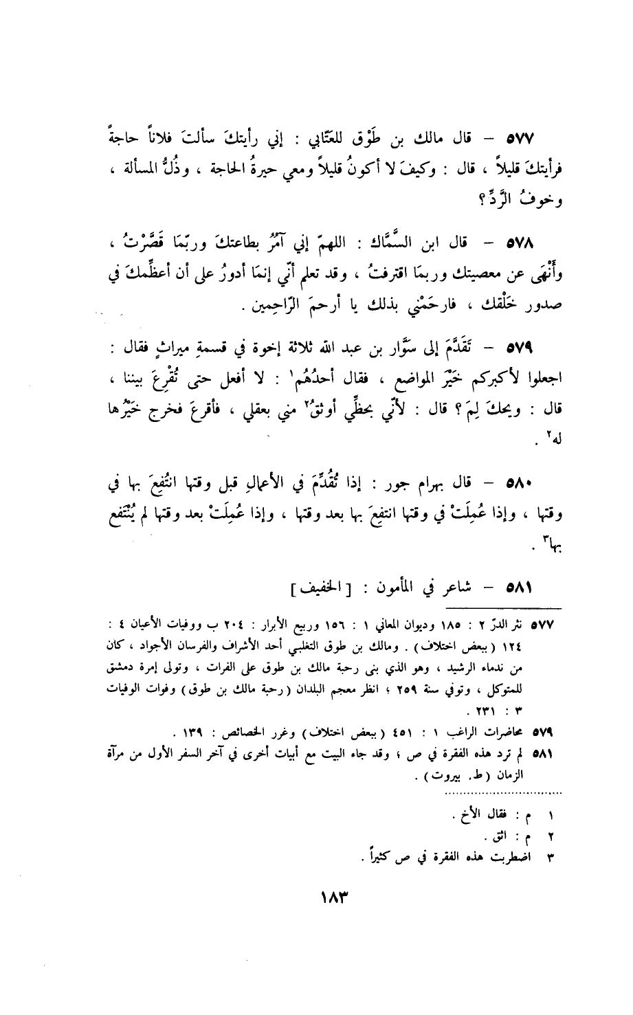 قال مالك بن طوق للعتّابي: إني رأيتك سألت فلاناً حاجةً فرأيتك قليلاً، قال: وكيف لا أكون قليلاً ومعي حيرة الحاجة، وذلّ المسألة، وخوف الرّدّ؟ قال ابن السّمّاك: اللهمّ إني آمر بطاعتك وربّما قصّرت، وأنهى عن معصيتك وربّما اقترفت، وقد تعلم إنّي إنما أدور على أن أعظّمك في صدور خلقك، فارحمني بذلك يا أرحم الراحمين.
