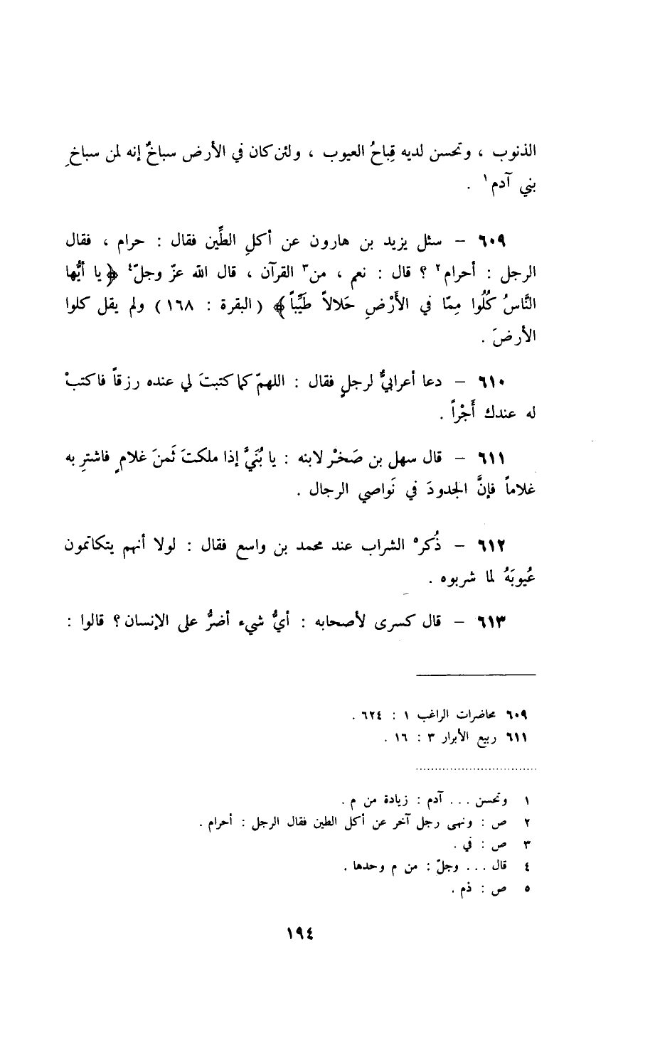 سئل يزيد بن هارون عن أكل الطّين فقال: حرام، فقال الرجل: أحرام؟ قال: نعم، من القرآن، قال الله عزّ وجلّ " يا أيّها النّاس كلوا ممّا في الأرض حلالاً طيّباً " ولم يقل كلوا الأرض.