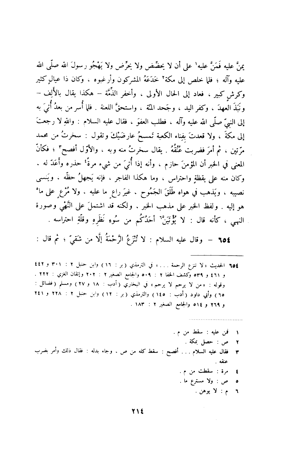 وقال عليه السلام: " لا تنزع الرّحمة إلا من شقيّ؛ ثم قال: