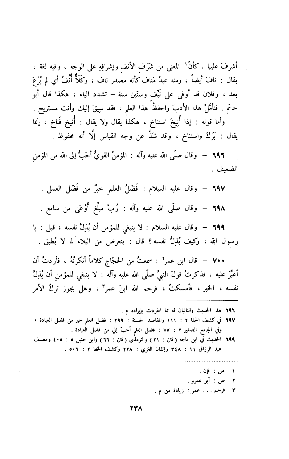 قال ابن عمر: سمعت من الحجّاج كلاماً أنكرته، فأردت أن أغيّر عليه، فذكرت قول النبيّ صلّى الله عليه وآله: " لا ينبغي للمؤمن أن يذلّ نفسه "، الخبر، فأمسكت؛ فرحم الله ابن عمر، وهل يجوز ترك الأمر