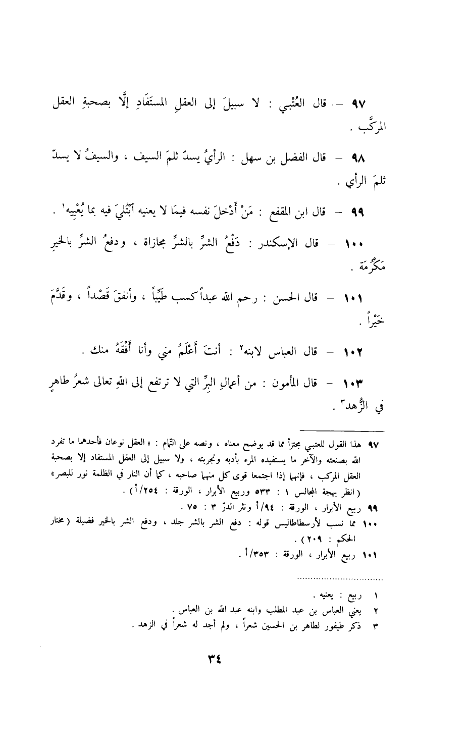قال العتبي: لا سبيل إلى العقل المستفاد إّلا بصحبة العقل المركّب.