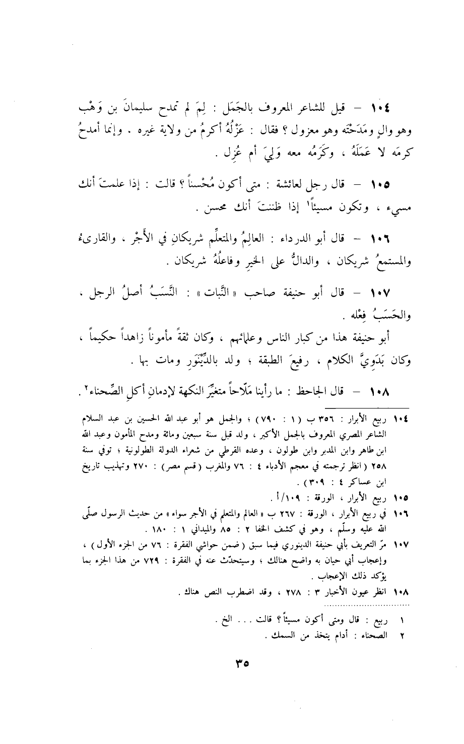 قيل للشاعر المعروف بالجمل: لم لم تمدح سليمان بن وهب وهو والٍ ومدحته وهو معزول؟ فقال عزله أكرم من ولاية غيره، وإنما أمدح كرمه لا عمله، وكرمه معه وليّ أم عزل.