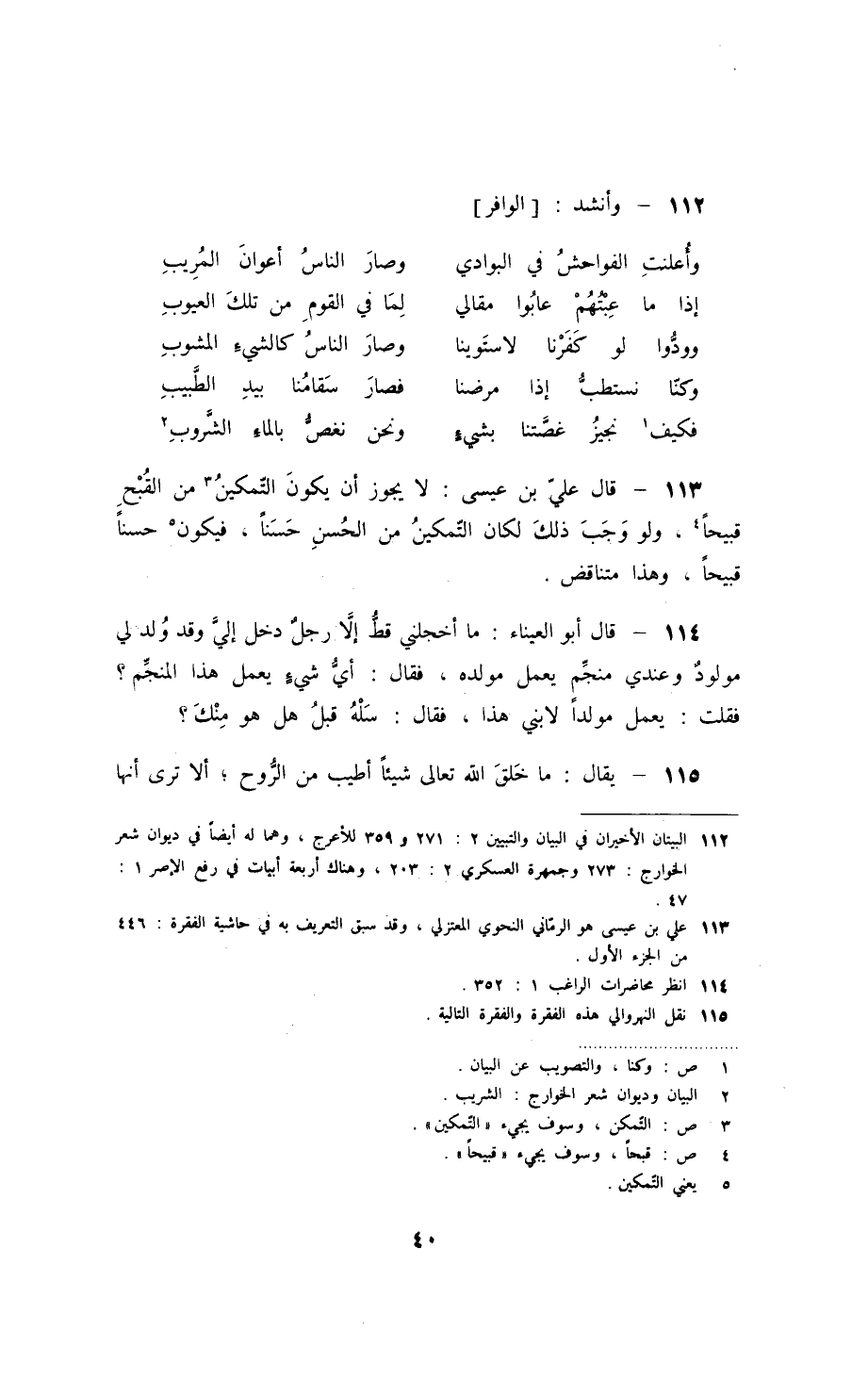قال أبو العيناء: ما أخجلني قطّ إّلا رجلٌ دخل إليّ وقد ولد لي مولودٌ وعندي منجّم يعمل مولده، فقال: أيّ شيءٍ يعمل هذا المنجّم؟ فقلت: يعمل مولداً لابني هذا، فقال: سله قبل هل هو منك؟ يقال: ما خلق الله تعالى شيئاً أطيب من الرّوح، ألا ترى أنها