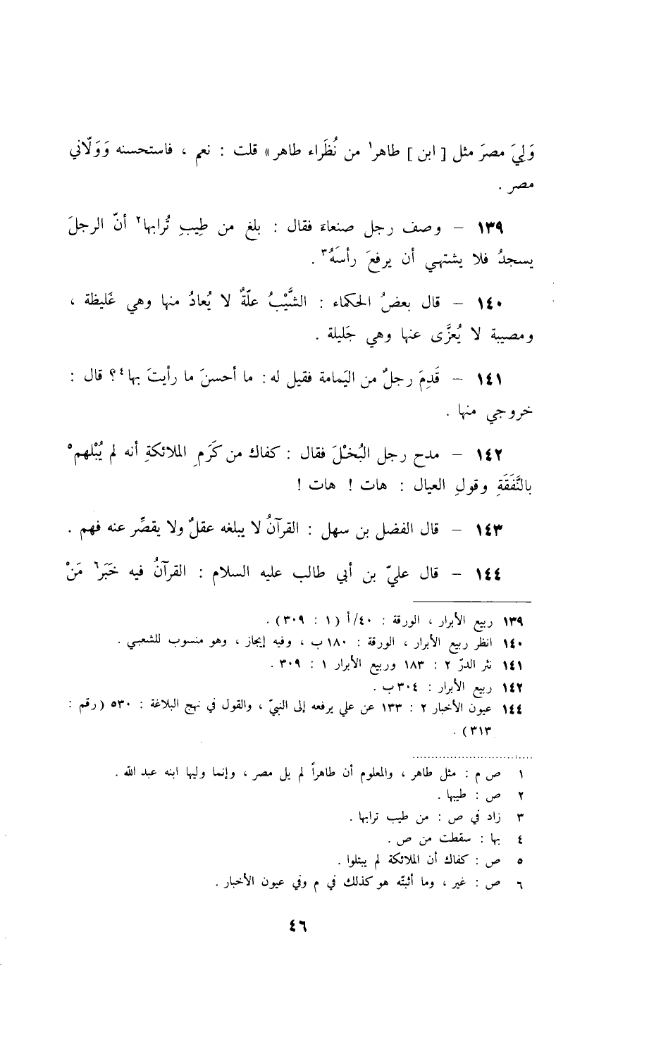 مدح رجل البخل فقال: كفاك من كرم الملائكة أنه لم يبلهم بالنّفقة وقول العيال: هات! هات! قال الفضل بن سهل: القرآن لا يبلغه عقلٌ ولا يقصّر عنه فهم.