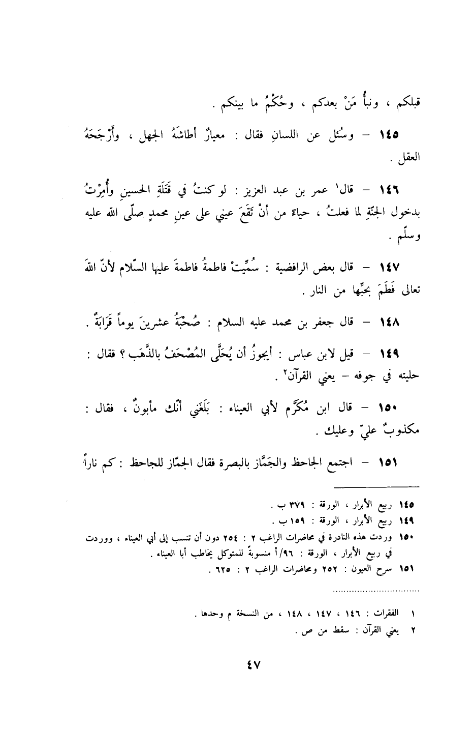 اجتمع الجاحظ والجمّاز بالبصرة فقال الجمّاز للجاحظ: كم ناراً
