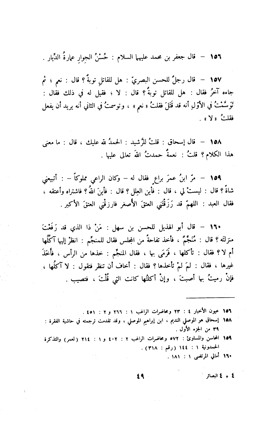 قال إسحاق: قلت للرّشيد: الحمد لله عليك، قال: ما معنى هذا الكلام؟ قلت: نعمة حمدت الله تعالى عليها.