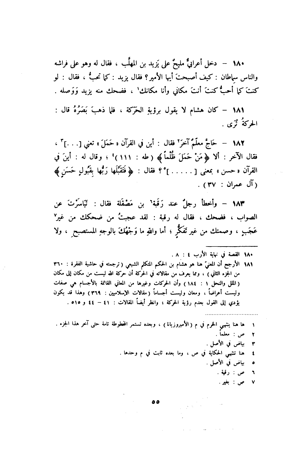 - كان هشام لا يقول برؤية الحركة، فلما ذهب بصره قال: الحركة ترى.