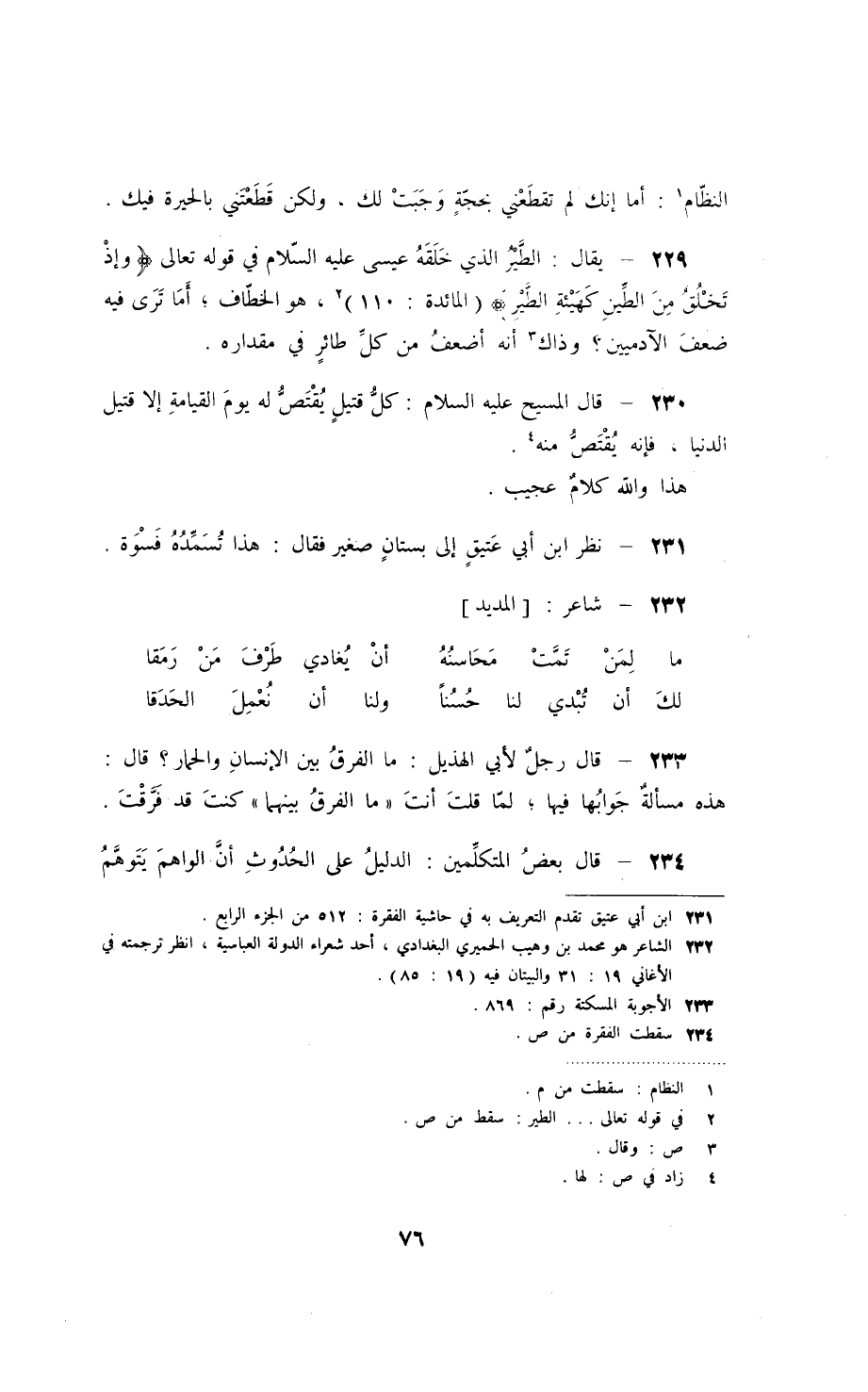 النّظّام: أما إنك تقطعني بحجّةٍ وجبت لك، ولكن قطعتني بالحيرة فيك.