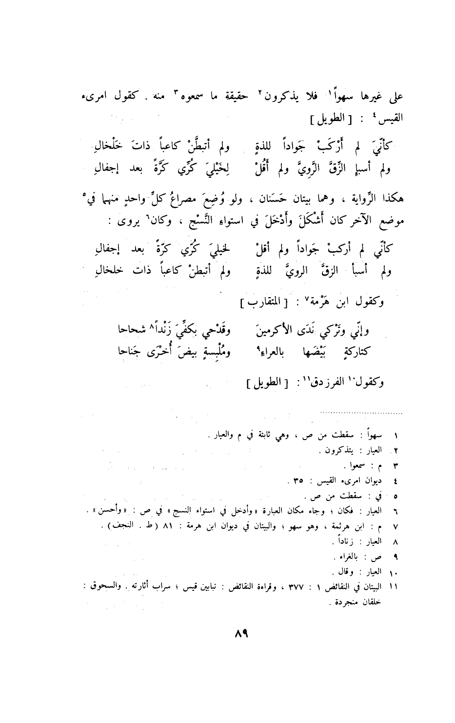 على غيرها سهواً فلا يذكرون حقيقة ما سمعوه منه. كقول امرئ القيس: الطويل