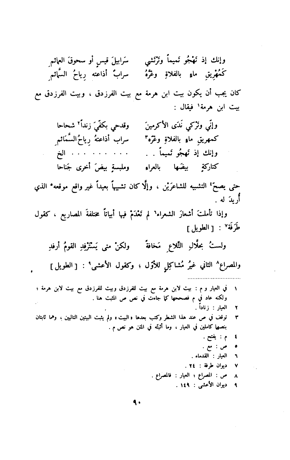 كان يجب أن يكون بيت ابن هرمة مع بيت الفرزدق، وبيت الفرزدق مع بيت ابن هرمة فيقال: