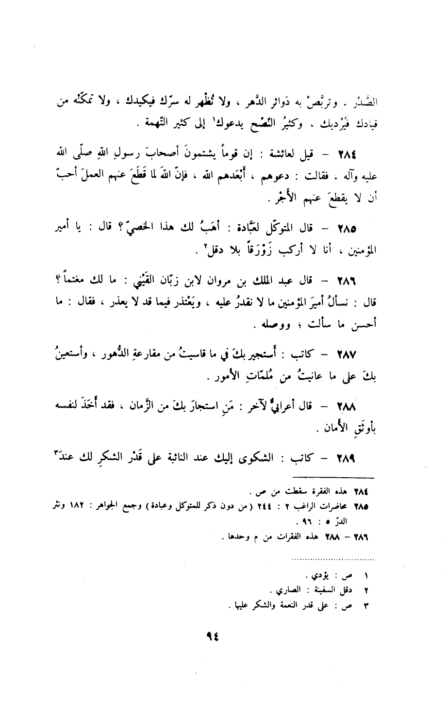الصّدر، وتربّص به دوائر الدّهر، وال تظهر له سرّك فيكيدك، ولا تمكنّه من قيادك فيرديك، وكثير النّصح يدعوك إلى كثير التّهمة.