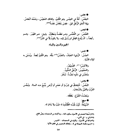 جفس : الجِفْسُ : لُغَةٌ في الجِنْسِ وهو اللَّئيمُ ، وكذلك الجَفِيْسُ ، وجَمْعُه أجْفاسٌ . وإذا أتْخَمَ الرَّجُلُ قيل : جَفِسَ يَجْفَسُ جَفَساً . فجس : الفَجْسُ : من التَّفَجُّسِ وهو عَظَمَةٌ وتَطَاوُلٌ . وقيل : هو القَهْرُ . وهو أيضاً : أنْ يَبْتَدِعَ الفِعْلَ لم يُسْبَقْ إليه ، ولا يكونُ إلاّ في الشَّرِّ .
