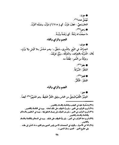 جزن : مُهْمَلٌ عنده . الخارزنجيُّ : حَطَبٌ جَزْنٌ : أي جَزْلٌ ، وجَمْعُه أحْزُنٌ . زجن : ما سَمِعْتُ له زَجْنَةٌ : أي زَجْمَة ونَبْسَةً .
