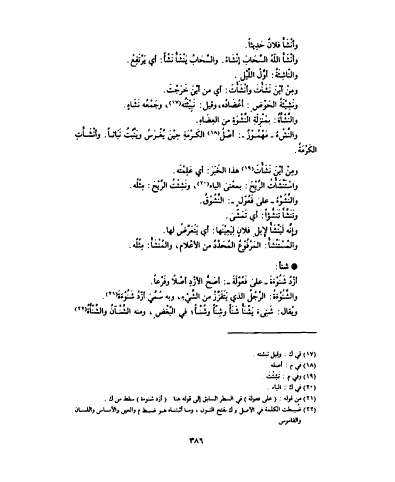 وأنْشَأَ فلانٌ حَدِيثاً . وأنْشَأَ اللّهُ السَّحَابَ إنْشَاءً . والسَّحَابُ يَنْشَأُ نَشْأً : أي يَرْتَفِعُ . والنّاشِئَةُ : أوَّلُ اللَّيْلِ . ومِنْ أيْنَ نَشَأْتَ وأنشأت : أي من أيْنَ خَرَجْتَ . ونَشِيْئَةُ الحَوْضِ : أعْضَادُه ، وقيل : نَبِيْثَتُه ، وجَمْعُه نَشَاءٍ . والنَّشْأَةُ : بِمَنْزِلَةِ النَّشْوَةِ من العِضَاهِ . والنَّشْىءُ مَهْمُوْزٌ : أصْلُ الكَرْمَةِ حِيْنَ يُغْرَسُ ويَنْبُتُ نَبَاتاً . وأنْشَأَتِ الكَرْمَةُ . ومِنْ أيْنَ نَشَأْتَ هذا الخَبَرَ : أي عَلِمْتَه . واسْتَنْشَأْتُ الرِّيْحَ : بمعْنى الياء ، ونَشِئْتُ الرِّيْحَ : مَثْلُه . والنَّشؤُ على فَعُوْلٍ : النَّشُوْقُ . وتَنَشَّأَ تَنَشُّؤاً : أي تَمَشّى . وإِنَّه لَيَنْشَأُ لإِبلِ فلانٍ لِيَعِيْنَها : أي يَتَعَرَضَ لها . والمُسْتَنْشَأُ : المَرْفُوْعُ المُحَدَّدُ من الأعْلام ، والمُنْشَأُ : مِثْلُه . شنأ : أزْدُ شَنُوْءَةَ على فَعُوْلَةَ : أصَحُّ الأزْدِ أصْلاً وفَرْعاً . والشَّنُوْءَةُ : الرَّجُلُ الذي يَتَقَزَّزُ من الشَّيْءِ ، وبه سَمِّيَ أزْدُ شَنُوْءَةَ . ويُقال : شَنِىءَ يَشْنَأُ شَنَأً وشِنْأً ؛ في البُغْضِ ، ومنه الشَّنْآنُ والشَّنْأَةُ .