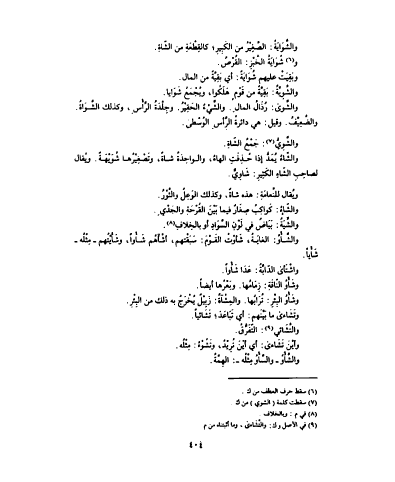 والشُّوَايَةُ : الصَّغِيْرُ من الكَبِيرِ ؛ كالقِطْعَةِ من الشّاةِ . وشُوَايَةُ الخُبْزِ : القُرْصُ . وبَقِيَتْ عليهم شُوَايَةٌ : أي بَقِيَّةٌ من المال . والشَّوِيّةُ : بَقِيَّةٌ من قَوْمٍ هَلَكُوا ، ويُجْمَعُ شَوَايا . والشَّوى : رُذَالُ المالِ . والشَّيْءُ الحَقِيْرُ . وجِلْدَةُ الرَّأسِ ، وكذلك الشَّوَاةُ . والضَّعِيْفُ . وقيل : هي دائرةُ الرَّأْسِ الوَسْطى . والشَّوِيُّ : جَمْعُ الشّاةِ . والشّاءُ يُمَدُّ إذا حُذِفَتِ الهاءُ ، والواحِدَةُ شاةٌ ، وتَصْغِيْرُها شُوَيْهَةٌ . ويُقال لصاحِبِ الشّاءِ الكَثِيرِ : شَاوِيٌّ . ويُقال للنَّعامَةِ : هذه شاةٌ ، وكذلك الوَعِلُ والثَّوْرُ . والشّاءُ : كَواكِبُ صِغَارٌ فيما بَيْنَ القُرْحَةِ والجَدْيِ . والشِّيَةُ : بَيَاضٌ في لَوْنِ السَّوَادِ أو بالخِلافِ . والشَّأْوُ : الغايَةُ ، شَأوْتُ الٌقَوْمَ : سَبَقْتهم ، أشْآهُم شَأْواً ، وشَأَيْتُهم مِثْلُه شَأْياً . واشْتَأى الدّابَّةُ : عَدَا شَأْواً . وشَأْوُ النّاقَةِ : زِمَامُها . وبَعْرُها أيضاً . وشَأْوُ البِئْرِ : تُرَابُها . والمِشْآةُ : زَبِيْلٌ يُخْرَجُ به ذلك من البِئْرِ . وتَشَاءى ما بَيْنَهم : أي تَبَاعَدَ ؛ تَشَائياً . والتَّشَائي : التّفَرُّقُ . وأيْنَ تَشَاءى : أي أيْنَ تُرِيْدُ ، وتَشُوْءُ : مِثْلُه . والشَّأْوُ والسَّأْوُ مِثْلُه : الهِمَّةُ .