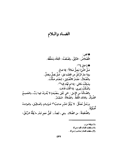 لض : اللَّضْلاَضُ : الدَّلِيْلُ ، ولَضْلَضَتُه : الْتِفَاتُه وتَحَفُّظُه . [ ضل ] : ضَلَّ الشَّيْءُ يَضِلُّ ضَلاَلاً : إذا ضاعَ . وإذا جارَ الرَّجُلُ عن القَصْدِ قيل : ضَلَّ يَضِلُّ ويَضَلُّ . والتَّضْلاَلُ : مَصْدَرٌ كالتَّضْلِيلِ ؛ لِمَصْدَرِ ضَلَّلْتُ . وضَلِلْتُ مَكاني : إذا لم تَهْتَدِ إليه . وأضْلَلْتُ بَعِيري : إذا أفْلَتَ فّذَهَبَ . والضّالَّةُ من الإِبِلِ : التي تَبْقَى بمَضْيَعَةٍ لا يُعْرَفُ لها رَبٌّ ، والجَميعُ الضَّوَالُّ . وكذلك اللُّقَطُ . والضَّلاَلَةُ : المَصْدَرُ . 0 ورَجُلٌ مَضَلَّلٌ : لا يُوَفَّقُ لخَيْرٍ صاحِبُ غَوَاياتٍ وأضَاليْلَ ، والواحِدُ أُضْلُوْلَةٌ . والضُّلَضِلَةُ : من الضَّلاَل . زهي أيضاً : كُلُّ حَجَرٍ قَدْر ما يُقِلُّهُ الرَّجُلُ ؛
